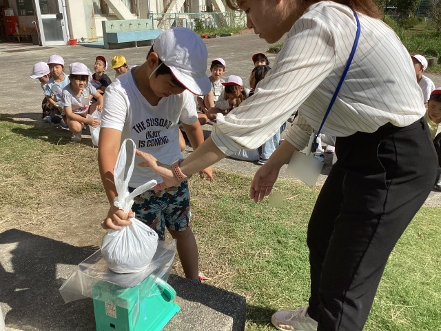 袋に穴があいてしまい砂が少しこぼれてしまいましたが、きれいに片づけてくれていました。