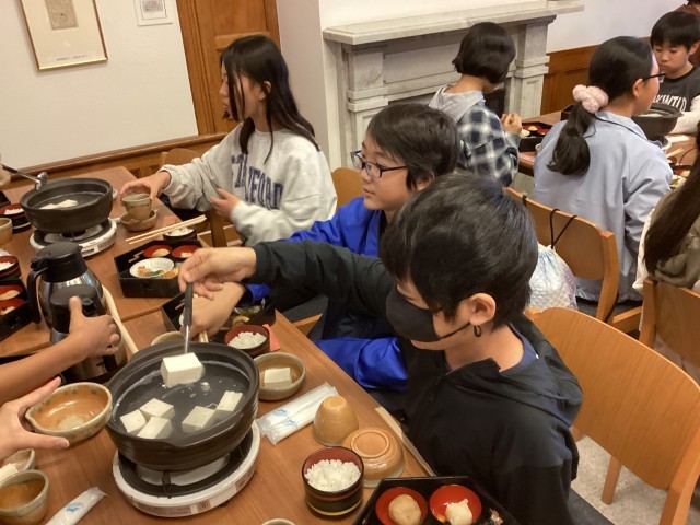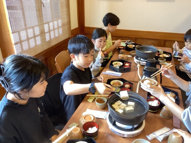 修学旅行、最後の食事です。熱々の湯どうふを食べました。