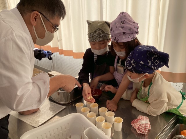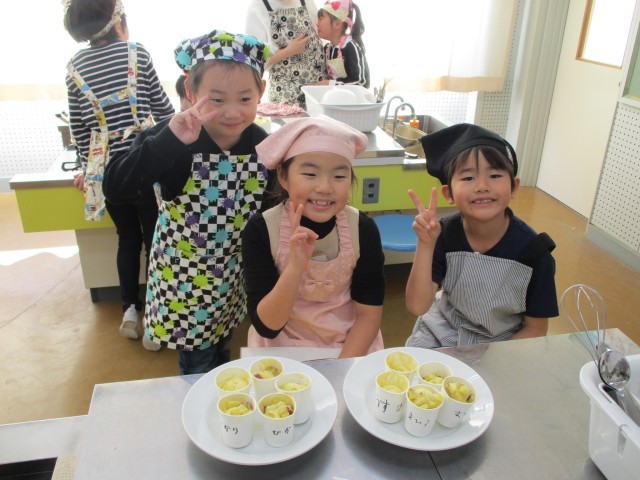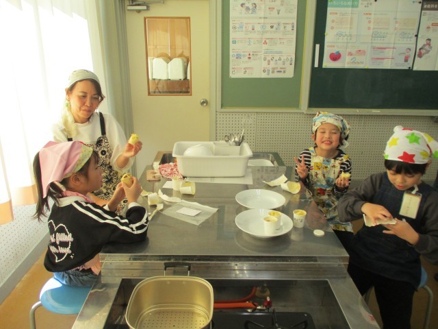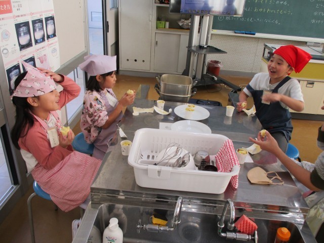 11/6(木)生活科の授業で2年1組が収穫したお芋を使ってお芋蒸しパンケーキを作りました。