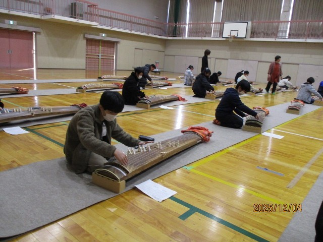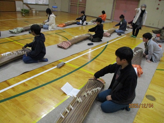 箏の歴史や演奏の仕方について教えていただき、実際にみんなで「さくら」を演奏しました。