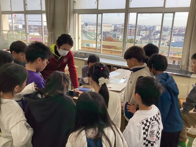 4年生の図画工作「きって楽しい きっと使える」では、のこぎりを使って好きな形に切ったり、金づちを使い釘を打ったりしてつないで作品を作っています。