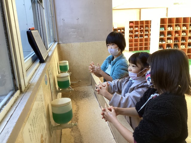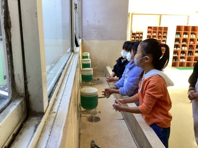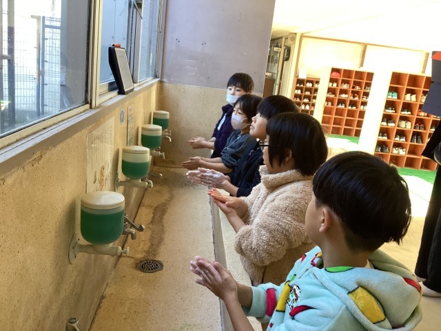 1年生は保健委員さんから手洗い指導を受けました。教室で説明を受けてから手洗い場へ行き、「手洗いゴッシー」の曲に合わせて手洗いの仕方を実践しました。手洗いをした後にはハンカチで手をしっかりと拭きます。普段からハンカチとティッシュをポケットに入れておくことも大切です。丁寧に手洗いをして、風邪の菌を取り込まない体づくりを目指します。