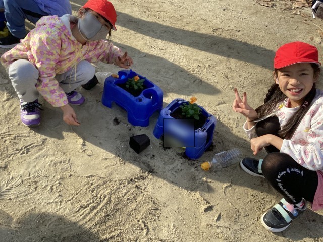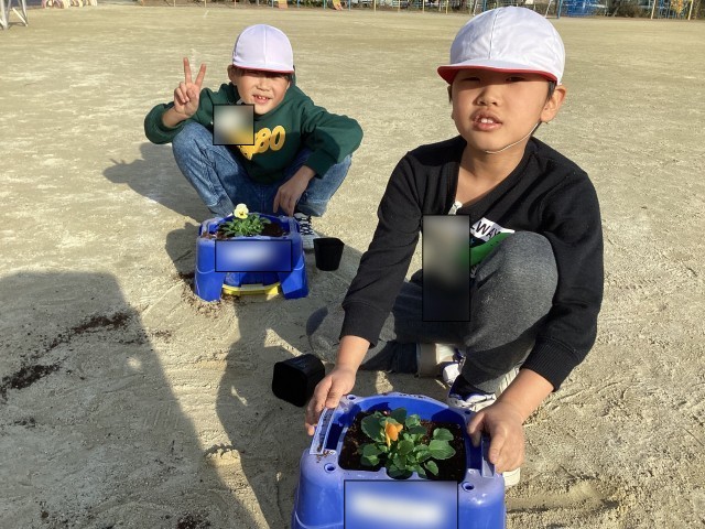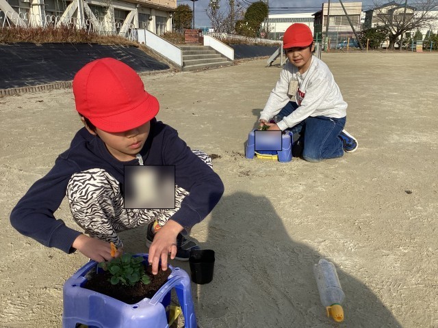 12月19日(金)の5時間目にビオラを植えました。きれいな花を咲かせられるようにと願いをこめて植えることができました。