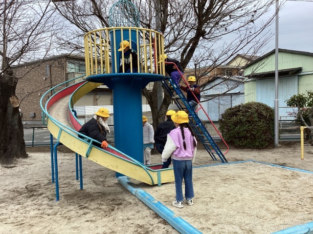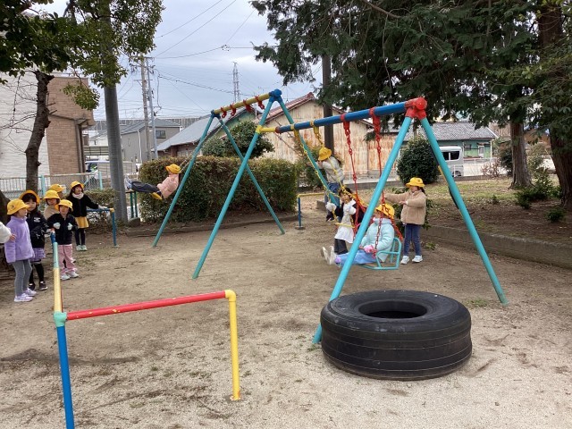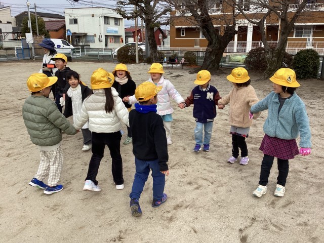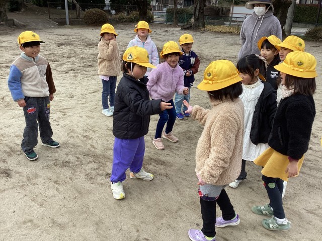 青山上児童遊園に行きました。「桜の木の葉っぱがほとんどなくなった」「ありなどの虫が一匹もいない」など冬を見つける学習もしました。とても寒い日でしたが、「はないちもんめ」の遊びで全員で大盛り上がり!元気いっぱい遊ぶことができました。