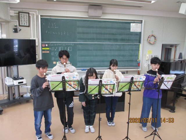 グループで音を分担して、「想い出のアルバム」をリコーダー演奏しました。速さとタイミングを合わせることが難しかったです。