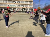 明るく「天までとどけ…」と声を出す子ども役のみんなと、大きな声で「もっとたかく…」と空で待つくじらぐも役の子どもたちに分かれました。