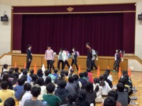 臨時で全校集会を開きました。豊山町の学校でのタブレット端末やスマートフォンの取り...