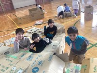 1月20日(火)に図工の授業で「段ボールにはいってみると」を体育館で行いました。...