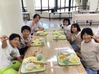 朝の集いの後は朝食です。みんな朝からいっぱいご飯を食べています。 この後、部屋...