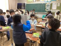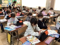 1年生は国語で、「たぬきの糸車」の好きな場面とその理由をノートに書きました。そし...