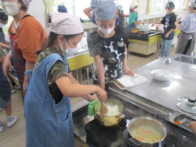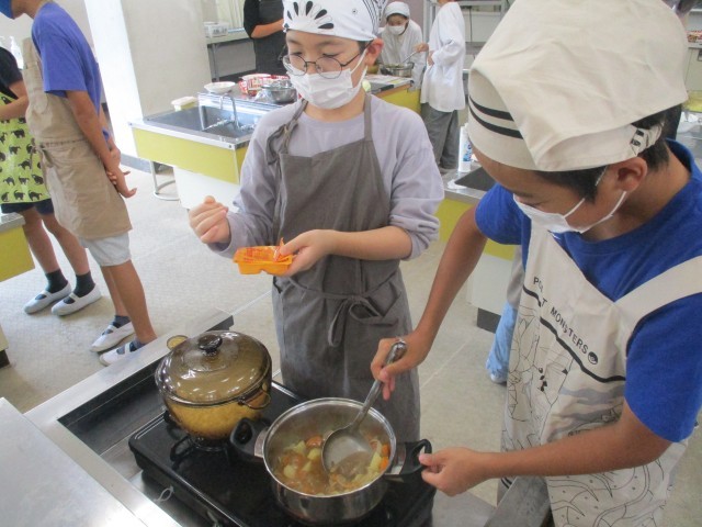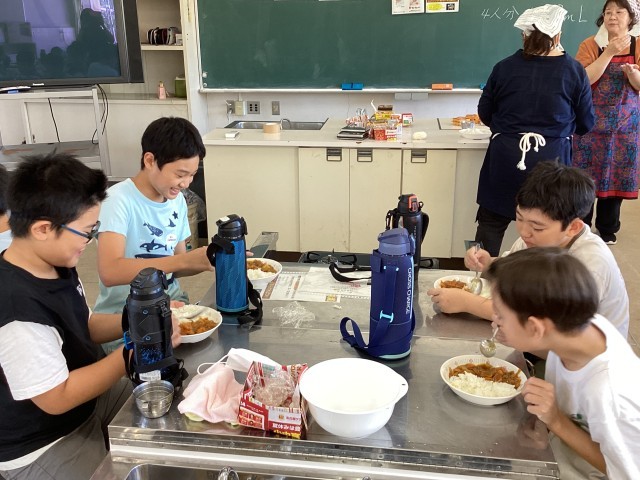 家庭科の時間では、カレーライスの調理実習を行いました。子どもたちは、水加減や火加減、包丁の使い方などに気を付けながら班のメンバーと協力してカレーを作ることができました。野外学習では、今日より美味しいカレーを作ってくれることを楽しみにしています。