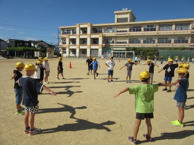 「太陽とかげ」の学習が始まりました。今日は自分たちの影に注目し、縦に並んで一列の長い影を作ったり、手をつないで、大きな輪になっているような影を作ったりするなど、みんなで協力して、「影つなぎ」をすることができました。