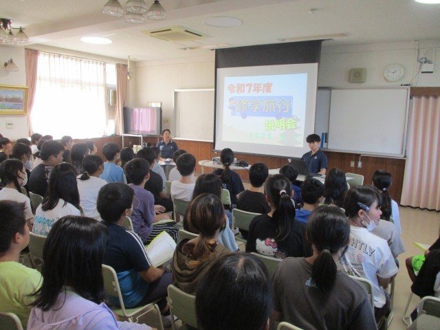 修学旅行に向けて学年集会を行いました。目的や日程を一つずつ確認しました。話を聞きながら真剣にメモする姿が見られました。来週は奈良公園での班別学習について計画する予定です。日本の歴史を自分の目で見て、しっかり学習していきます。