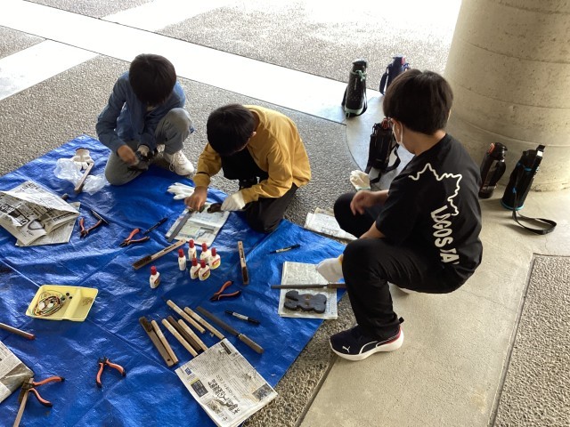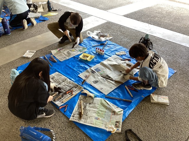 焼いた板をしんちゅうブラシや新聞紙で磨きます。