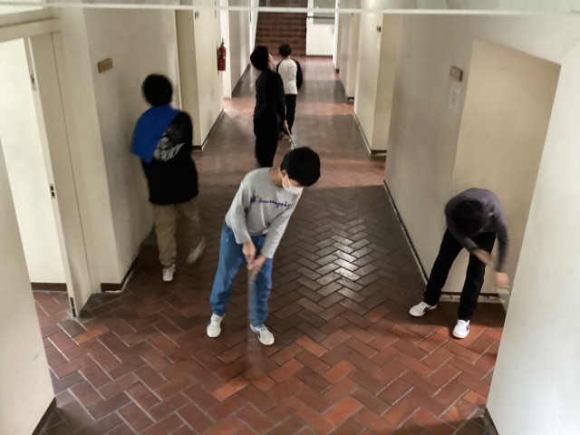 来たときよりも美しくなるように、使わせていただいた施設内を清掃しています。