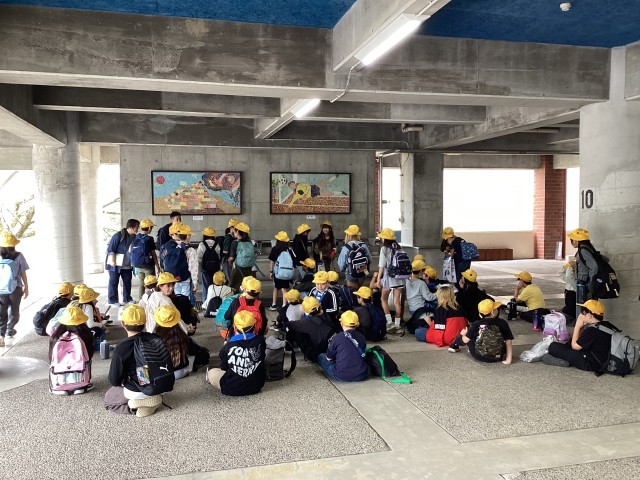 飯盒炊飯の説明を聞いています。今から炊事場へ向かいます。