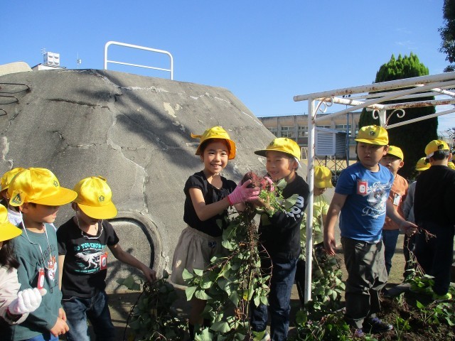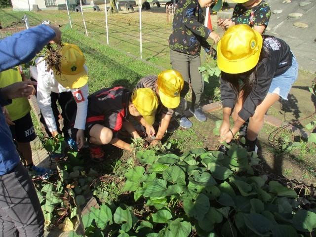 今日は、天気が良かったので、学年で育てている畑のさつまいもを掘りました。例年よりも暑く、さつまいもの育ちが良くありませんでしたが、お友達と協力して楽しく掘ることができました。