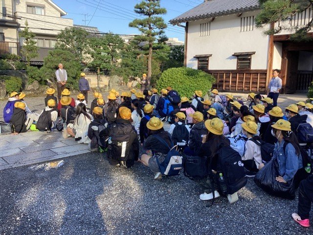 おはようございます。修学旅行二日目が始まりました。部屋の環境整備を行い、部屋ごとにおいしい朝食をいただきました。その後、退館式を行いました。このあとバスに乗り、金閣寺に向かいます。