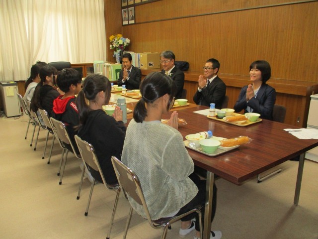 本日、「町長と児童との給食懇談会」が行われました。6年生の代表児童が町長さんと給食を食べながら懇談し、豊山町に対して日頃感じていることなどを話しました。終始和やかな雰囲気で会食し、児童は町長さんといろいろなお話ができ楽しかったようです。貴重な体験をさせていただき、ありがとうございました。