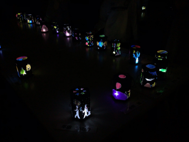 図工でステンドランタンを作りました。5時間目に5年生全員で作品鑑賞会をしました。
