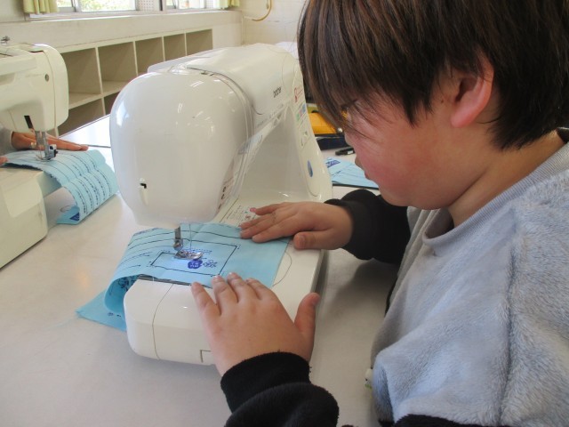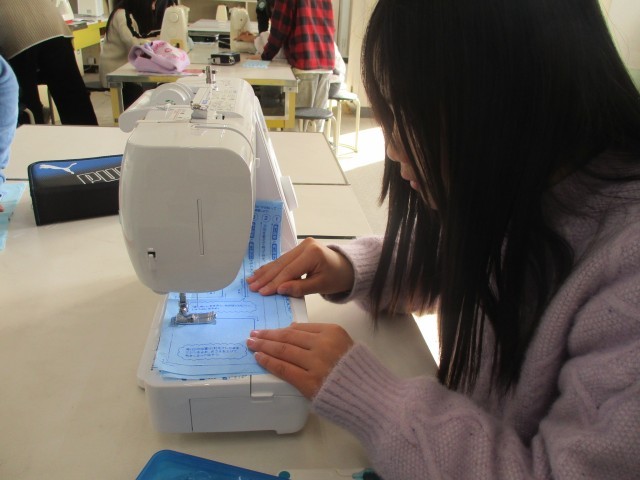 家庭科の授業では、初めてミシンぬいに挑戦しました。ミシン針や糸の付け方、ミシンの扱い方を知り、直線ぬいや返しぬいの練習をしました。慣れないミシンに苦戦する様子もありましたが、班で助け合いながら取り組むことができました。