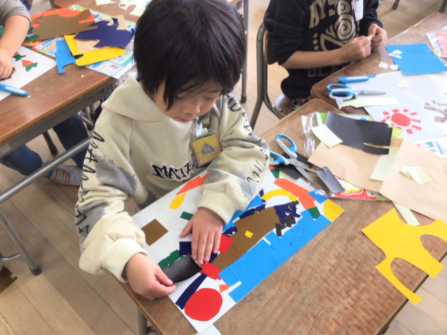 1年生 図工 1/20(火) 公開日 2026/01/20 更新日 2026/01/20 1年生 カラータック版画を制作しました。色の組み合わせを考えながら、はさみを使ってタックシールを丁寧に切る児童の姿が見られました。 いいね(0)