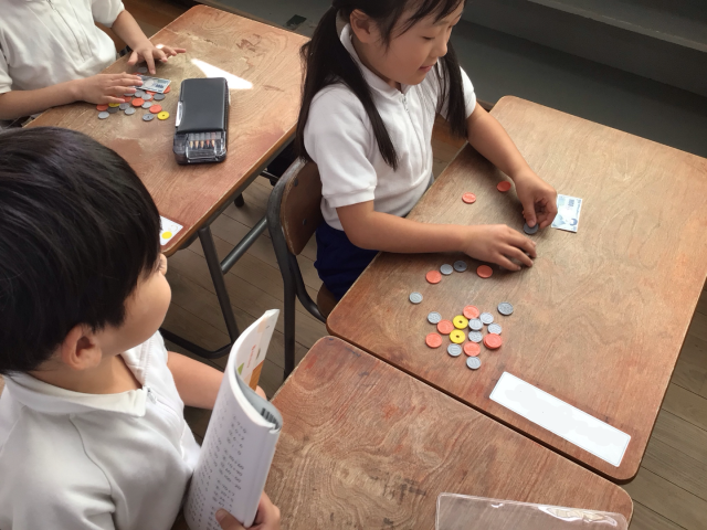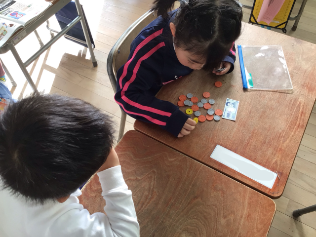 1年生 算数 1/22(木) 公開日 2026/01/23 更新日 2026/01/22 1年生 「大きいかず」の単元を学習しました。模擬のお金を使って買い物遊びを行い、お金の出し方を考えました。 いいね(0)