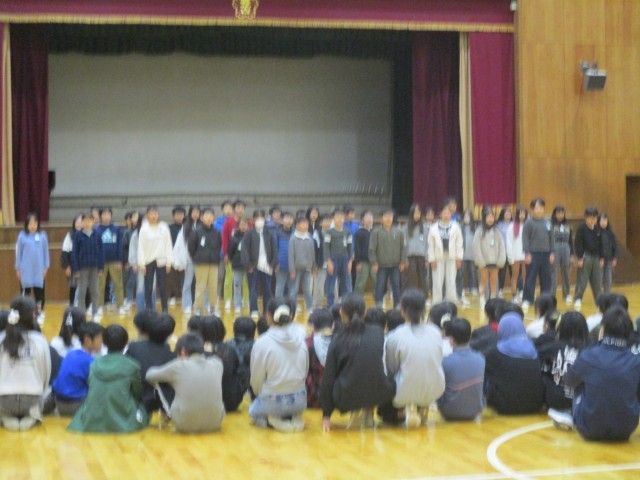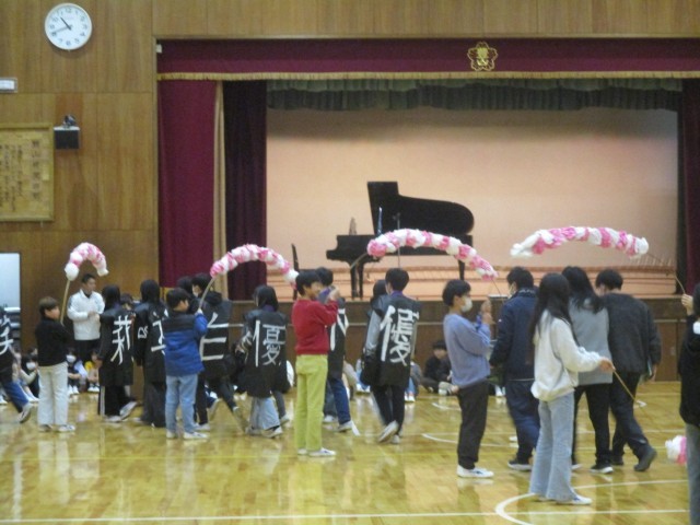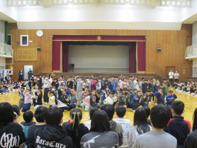 卒業生を送る会 2/25(水) 公開日 2026/02/25 更新日 2026/02/25 学校生活 1年生から5年生が、歌やダンス、呼びかけ、思い出のスライドーショーなどを6年生へ感謝の気持ちを込めて発表しました。どの学年も素晴らしい発表でした。最後は6年生がソーラン節を披露し、全学年で校歌を歌いました。卒業式まで残り少ないですが、在校生と楽しい日々を過ごしてほしいです。 +4 いいね(0)