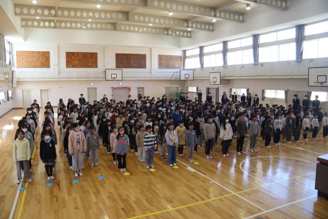 修了式では、全校児童が元気いっぱいに豊山健児の歌を歌う声が体育館に響き渡りました。