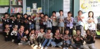 以前制作した凧を飛ばしました。自分の凧が空に揚がり、嬉しそうな表情を見せる児童の...