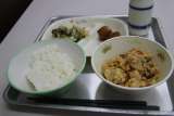 今日の給食は、牛乳、ごはん、もみのりサラダ、ごぼう入りつくね、親子煮でした。