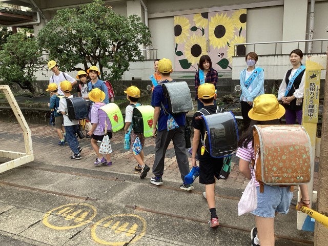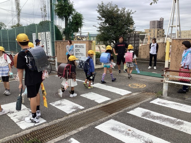 台風の影響からか、はっきりしない天候になりましたが、「おはようございます」と元気いっぱいのあいさつが聞こえました。