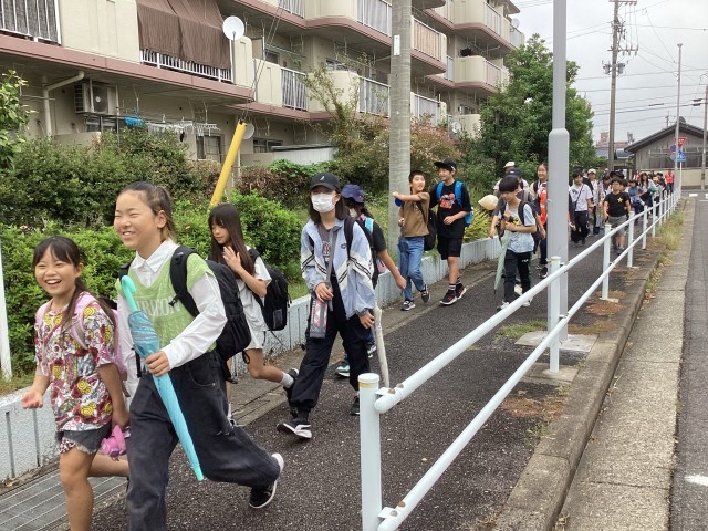 天候も心配されましたが、80名をこえる参加者が集まリました。志水小学校を出発し、みんなで励まし合いながら、力いっぱい歩みを進めて、目的地の庄内緑地公園まで、全員たどり着くことができました。