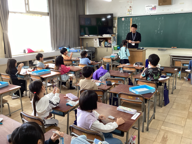1年生の算数では、くり上がりのあるたし算の学習を進めています。