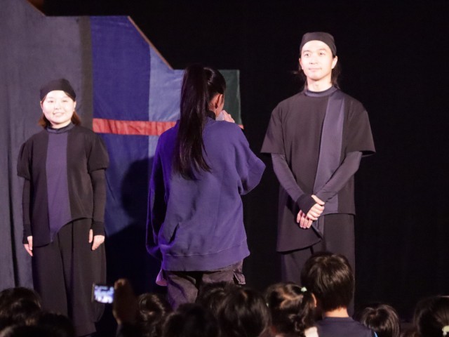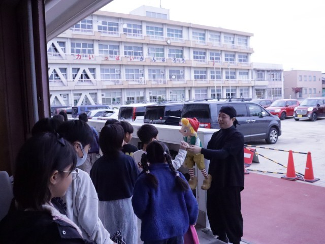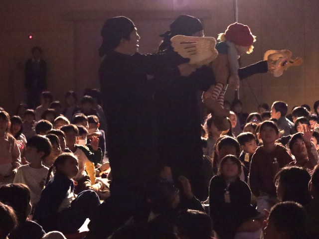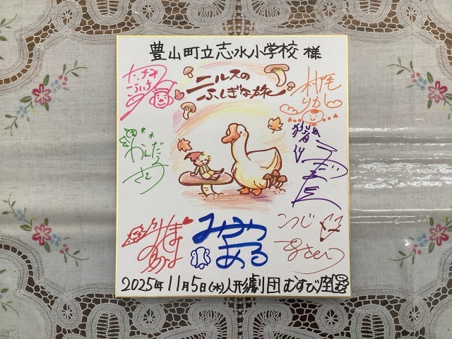 11月5日(水)、芸術鑑賞会が行われました。人形劇団むすび座の方々をお迎えし、「ニルスのふしぎな旅」の劇を鑑賞しました。子どもたちは、目の前に広がる迫力ある劇を観て、魅了されている様子でした。鑑賞後、劇団の方々から色紙を描いていただきました。校内でも掲示いたしますので、ぜひご覧ください。