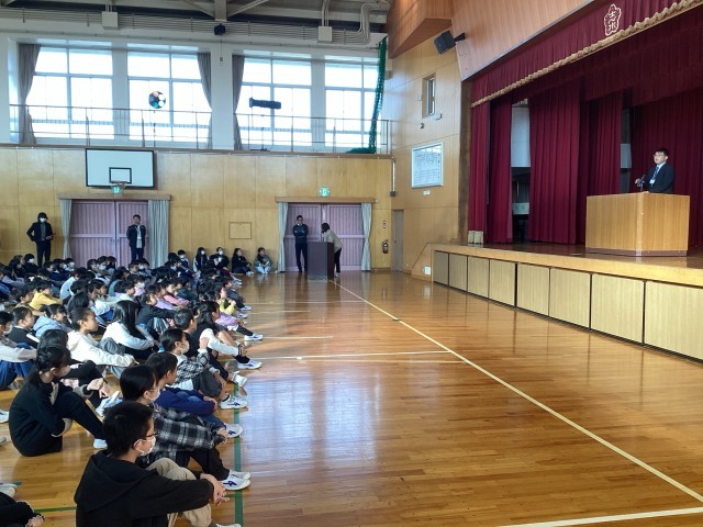 12月1日(月)、全校集会が行われました。今週の4日(木)〜10日(水)は人権週間ということで、校長先生から人権についてのお話がありました。