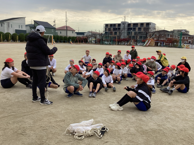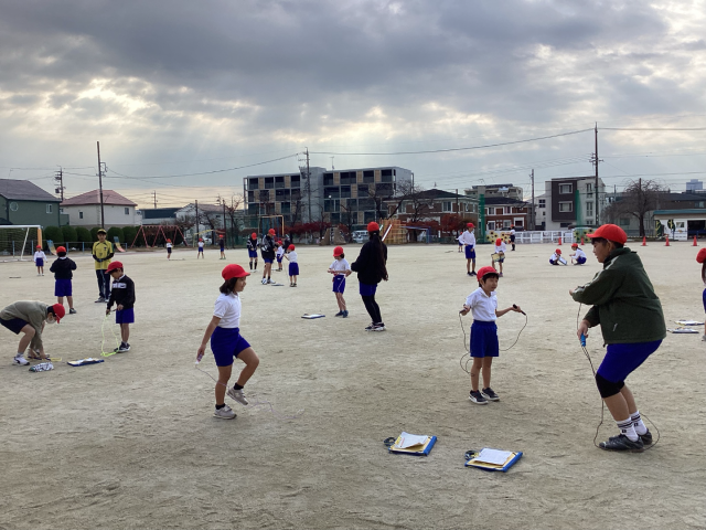 12月8日月曜日、6の1と1の1でなわとび交流会を行いました。6年生は1年生のなわとびカードを見ながら、「手首でまわすんだよ」「ゆっくりやってみよう」など、優しく声をかけて教える姿がみられました。