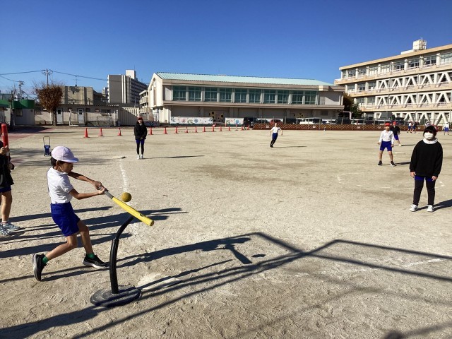 5年生の体育では、Tボールに取り組んでいます。4年生まででも取り組んでいる種目なので、攻撃については得点するためにどこに打ったらいいかを考えて打てる子、友達にアドバイスをもらいながら打っている子とさまざまいます。しかし、守備についてはボールをうまく握ることができなかったり、捕球したがどこに投げていいか分からずにいたりと課題が多いので、声をかけ合ってチームワークよく取り組んでいこうという話をしました。