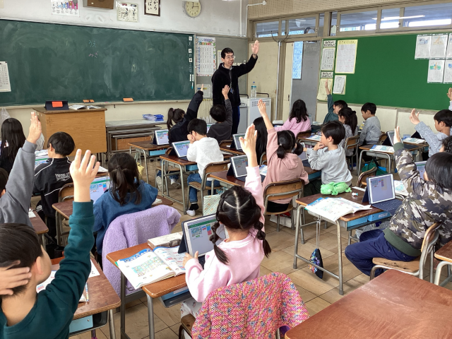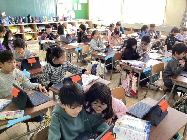 12月16日火曜日、1年2組の算数の学習で、プログラミング学習を行いました。ロボットに「上」「右」といった指示を出し、スタートから目的のマスまで動かします。子どもたちは、どの順番で動かせばよいかを考え、友だちと相談しながら取り組みました。思い通りに動いたときには喜びの声が上がり、試行錯誤を通して、順序立てて考える力を楽しく身に付けることができました。