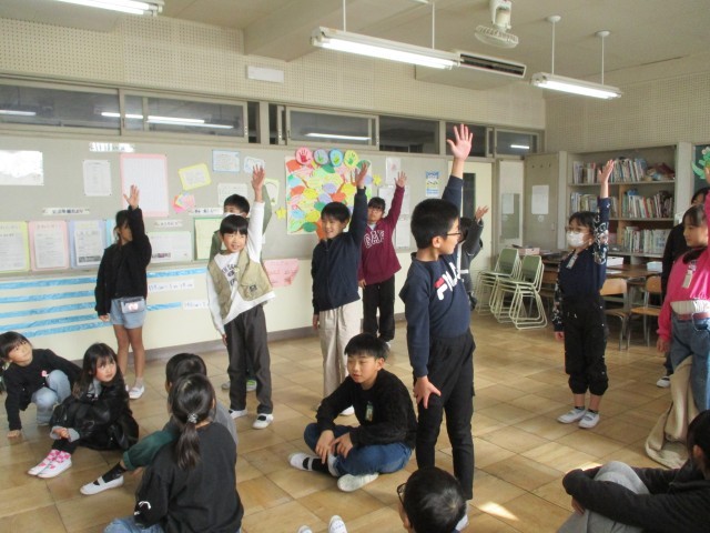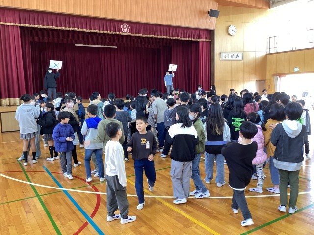 12月17日水曜日、たてわり班でお楽しみ集会を行いました。教室では、全員一致ゲームに取り組み、班の友達と意見を言いながら、答えをそろえようとする姿が見られました。