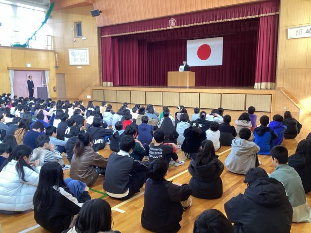 また、生徒指導の舘野先生からは、愛知県で最も交通事故が多い月は12月であることを踏まえ、交通安全に気を付けて、規則正しい生活を心がけてほしいとのお話がありました。