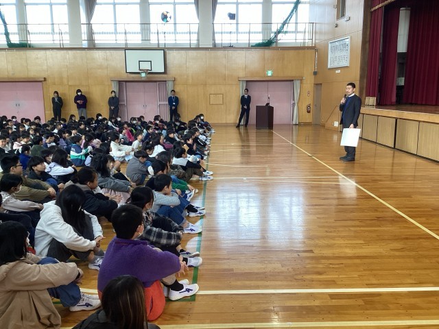 校長先生からは、「熊が冬眠の前に食べ物を集めるように、この冬休みに元気になるための『心の栄養』となる『ありがとう』や『笑顔』をたくさん集めてください。3学期にみなさんの『元気な笑顔』に会えるのを楽しみにしています。」とのお話がありました。