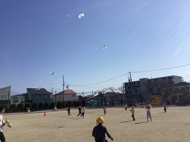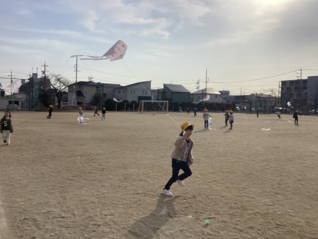 生活科「そとであそぼう」の活動で「凧あげ」をしました。風を感じながら空高く凧をあげる様子が見られました。授業では、家庭に持って帰った際は、大人と一緒に行うことや行う場所に注意することなども学習しました。