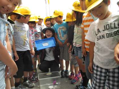 モンシロチョウとはお別れしましたが、教室にはまだ子どもたちが捕まえてきてくれたアゲハチョウの幼虫がたくさんおり、その中にはサナギもいます。観察を続けて立派な蝶になる瞬間を見届けましょう!