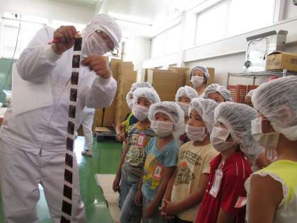 見学の最後には、働いている方たちに質問をしました。「お仕事をする時に気をつけていることはありますか」「何人の人が働いていますか」などの質問に、丁寧に答えていただきました。