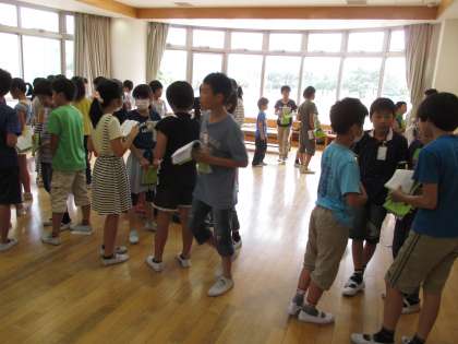 また、最終確認として、しおりを見ながら修学旅行の日程、実際に順序に沿った隊形の確認を行いました。最後の隊形確認では、テキパキと動き「こっちに集まって!」「もっと前後詰めて並んでね!」と、班で協力し合いながら素早く、綺麗に並ぶことができました。修学旅行当日もこの調子で並べるといいですね。