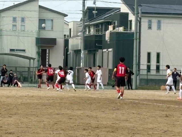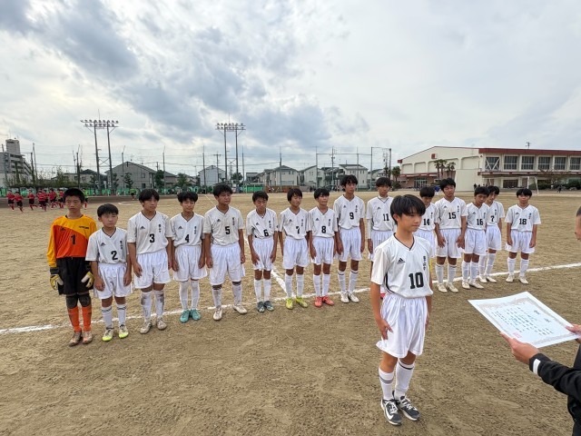 3位決定戦では西枇杷島中学校と対戦しました。この試合でも先制点を許す展開となりましたが、コーナーキックの流れから早い時間に追いつくことができました。