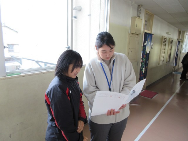 生徒ひとりひとりが通知表を見ながら、担任の先生とこれまでの学校生活や学習の様子を振り返りました。
