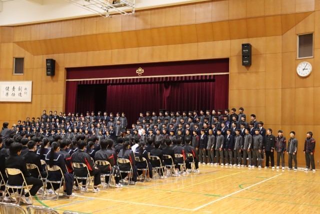 最後に、3年生の合唱を聴き、その美しさや迫力に感動していました。在校生は3年生の思いを受け継いで、これからの学校生活に生かしていきたいですね。