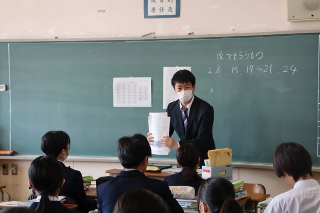 新年度がスタートしました。生徒は初めての学級活動で、担任の先生の自己紹介や、1年間大切にしてほしいことについての話を聞きました。
